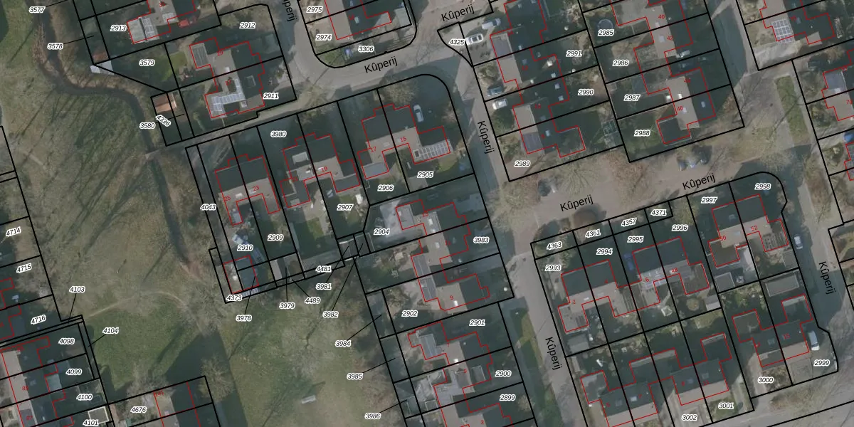 Kûperij 13 is gelegen op kadastraal perceel GRD00B2904. Deze kadastrale aanduiding is uniek en wordt gebruikt door het Kadaster om eigendomsrechten en andere zakelijke rechten vast te leggen. Het perceel maakt onderdeel uit van de kadastrale gemeente Gorredijk.