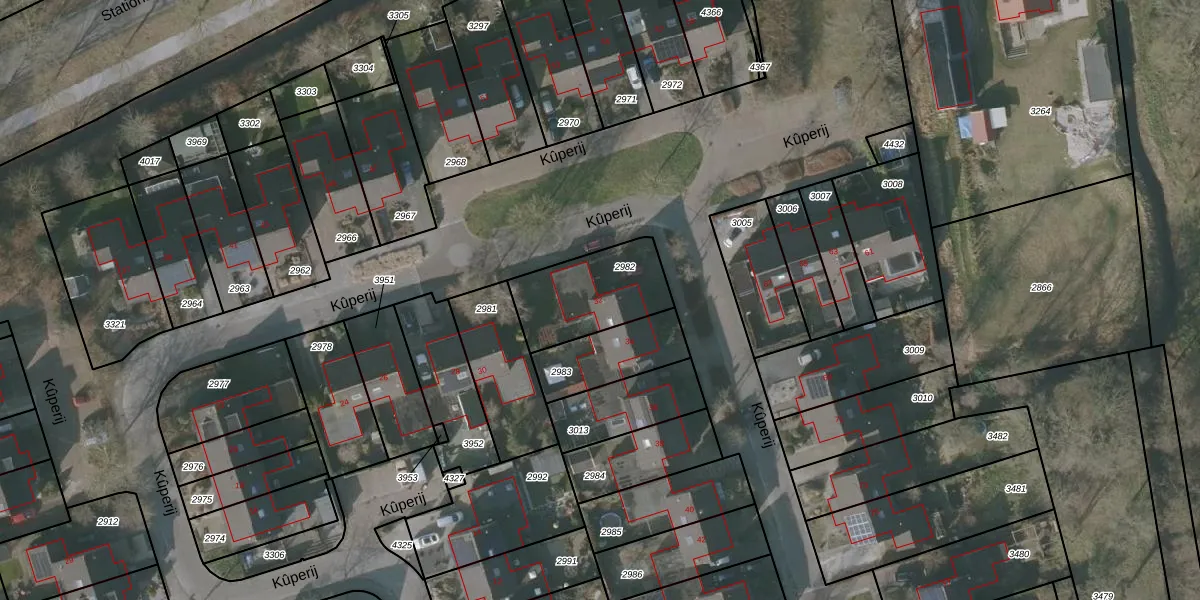 Kûperij 32 is gelegen op kadastraal perceel GRD00B2982. Deze kadastrale aanduiding is uniek en wordt gebruikt door het Kadaster om eigendomsrechten en andere zakelijke rechten vast te leggen. Het perceel maakt onderdeel uit van de kadastrale gemeente Gorredijk.