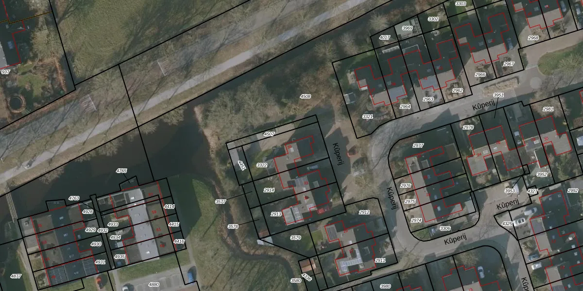 Kûperij 35 is gelegen op kadastraal perceel GRD00B3322. Deze kadastrale aanduiding is uniek en wordt gebruikt door het Kadaster om eigendomsrechten en andere zakelijke rechten vast te leggen. Het perceel maakt onderdeel uit van de kadastrale gemeente Gorredijk.