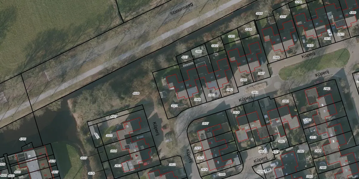 Kûperij 37 is gelegen op kadastraal perceel GRD00B3321. Deze kadastrale aanduiding is uniek en wordt gebruikt door het Kadaster om eigendomsrechten en andere zakelijke rechten vast te leggen. Het perceel maakt onderdeel uit van de kadastrale gemeente Gorredijk.