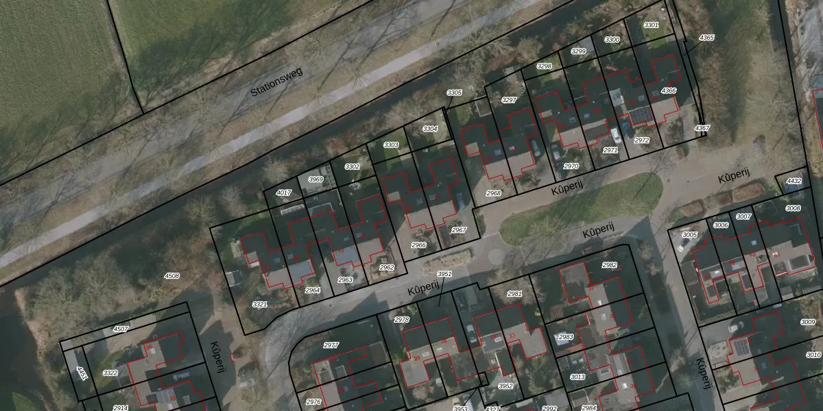 Kûperij 45 is gelegen op kadastraal perceel GRD00B2966. Deze kadastrale aanduiding is uniek en wordt gebruikt door het Kadaster om eigendomsrechten en andere zakelijke rechten vast te leggen. Het perceel maakt onderdeel uit van de kadastrale gemeente Gorredijk.