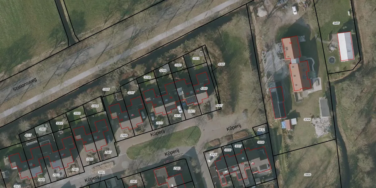 Kûperij 57 is gelegen op kadastraal perceel GRD00B2972. Deze kadastrale aanduiding is uniek en wordt gebruikt door het Kadaster om eigendomsrechten en andere zakelijke rechten vast te leggen. Het perceel maakt onderdeel uit van de kadastrale gemeente Gorredijk.