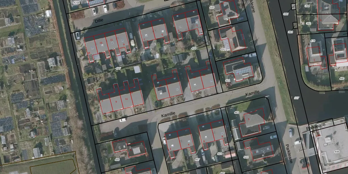 Kamille 17 is gelegen op kadastraal perceel GRD00F495. Deze kadastrale aanduiding is uniek en wordt gebruikt door het Kadaster om eigendomsrechten en andere zakelijke rechten vast te leggen. Het perceel maakt onderdeel uit van de kadastrale gemeente Gorredijk.