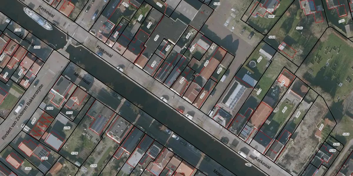 Gebruik de zoekbalk of klik op een perceel voor informatie over de adressen binnen dit perceel.