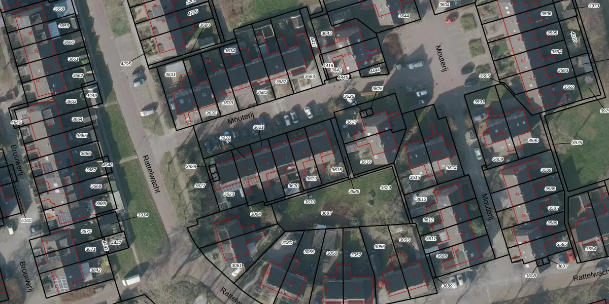 Het perceel waarop Mouterij 10 staat heeft een oppervlakte van 126 m². Dit is een middelgroot perceel. De perceeloppervlakte wordt geregistreerd door het Kadaster. Gedetailleerde informatie over de maten van dit perceel kunt u vinden in het rapport Kadastrale kaart met maatvoering van Mouterij 10.