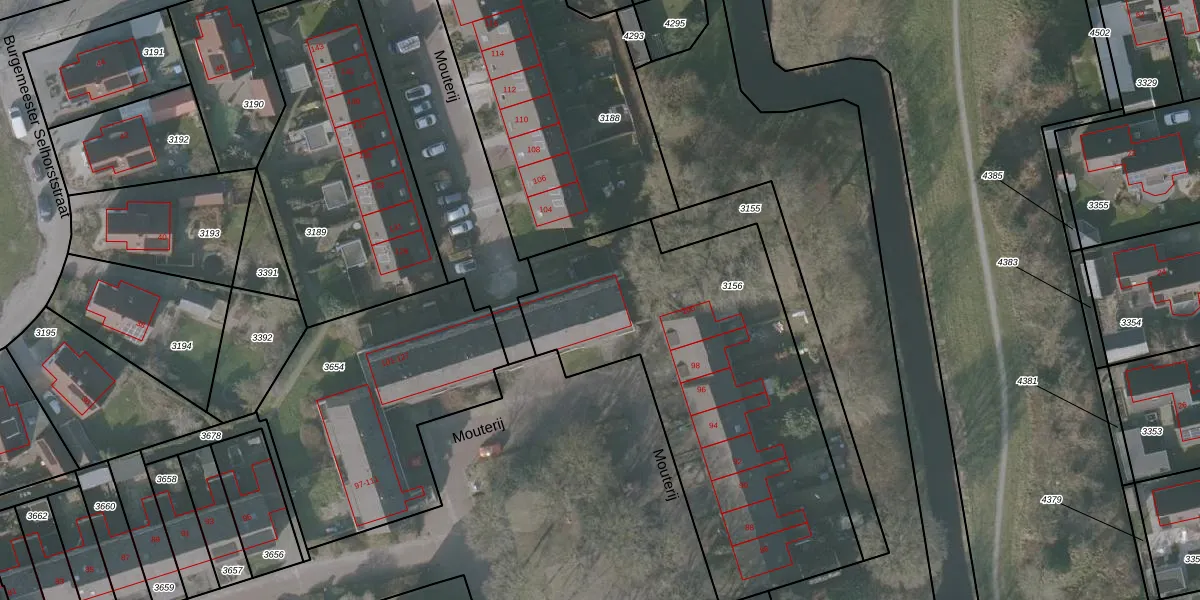 Mouterij 102 is gelegen op kadastraal perceel GRD00B3156. Deze kadastrale aanduiding is uniek en wordt gebruikt door het Kadaster om eigendomsrechten en andere zakelijke rechten vast te leggen. Het perceel maakt onderdeel uit van de kadastrale gemeente Gorredijk.