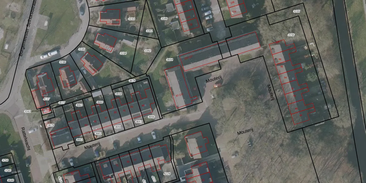 Mouterij 107 is gelegen op kadastraal perceel GRD00B3654. Deze kadastrale aanduiding is uniek en wordt gebruikt door het Kadaster om eigendomsrechten en andere zakelijke rechten vast te leggen. Het perceel maakt onderdeel uit van de kadastrale gemeente Gorredijk.