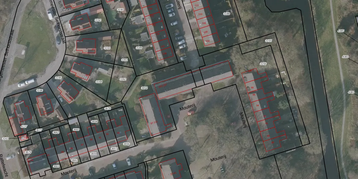 Het perceel waarop Mouterij 117 staat heeft een oppervlakte van 1122 m². Dit is een zeer groot perceel. De perceeloppervlakte wordt geregistreerd door het Kadaster. Gedetailleerde informatie over de maten van dit perceel kunt u vinden in het rapport Kadastrale kaart met maatvoering van Mouterij 117.