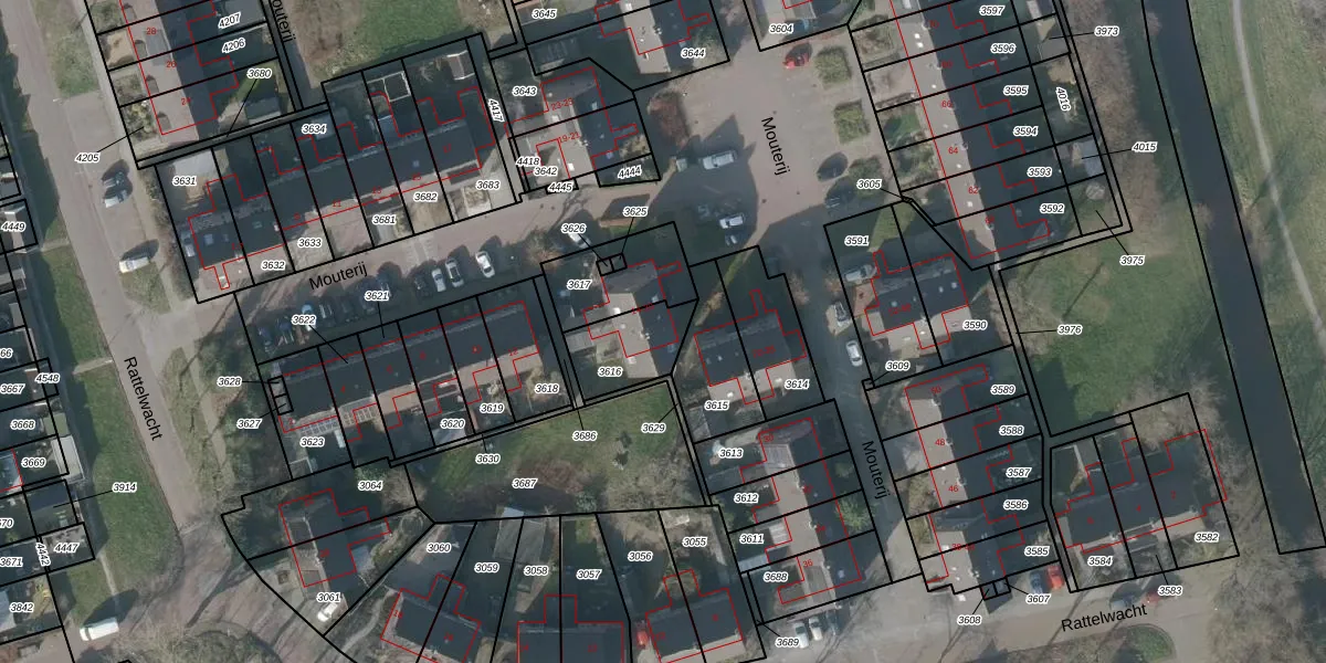 Het perceel waarop Mouterij 16 staat heeft een oppervlakte van 187 m². Dit is een middelgroot perceel. De perceeloppervlakte wordt geregistreerd door het Kadaster. Gedetailleerde informatie over de maten van dit perceel kunt u vinden in het rapport Kadastrale kaart met maatvoering van Mouterij 16.