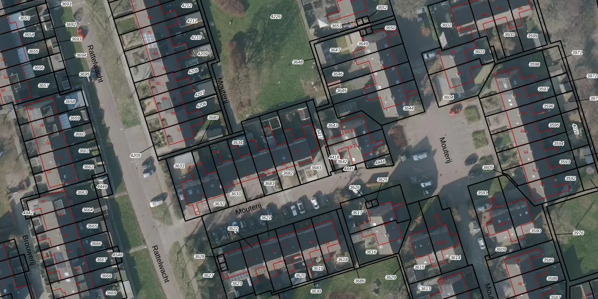Het perceel waarop Mouterij 17 staat heeft een oppervlakte van 260 m². Dit is een middelgroot perceel. De perceeloppervlakte wordt geregistreerd door het Kadaster. Gedetailleerde informatie over de maten van dit perceel kunt u vinden in het rapport Kadastrale kaart met maatvoering van Mouterij 17.