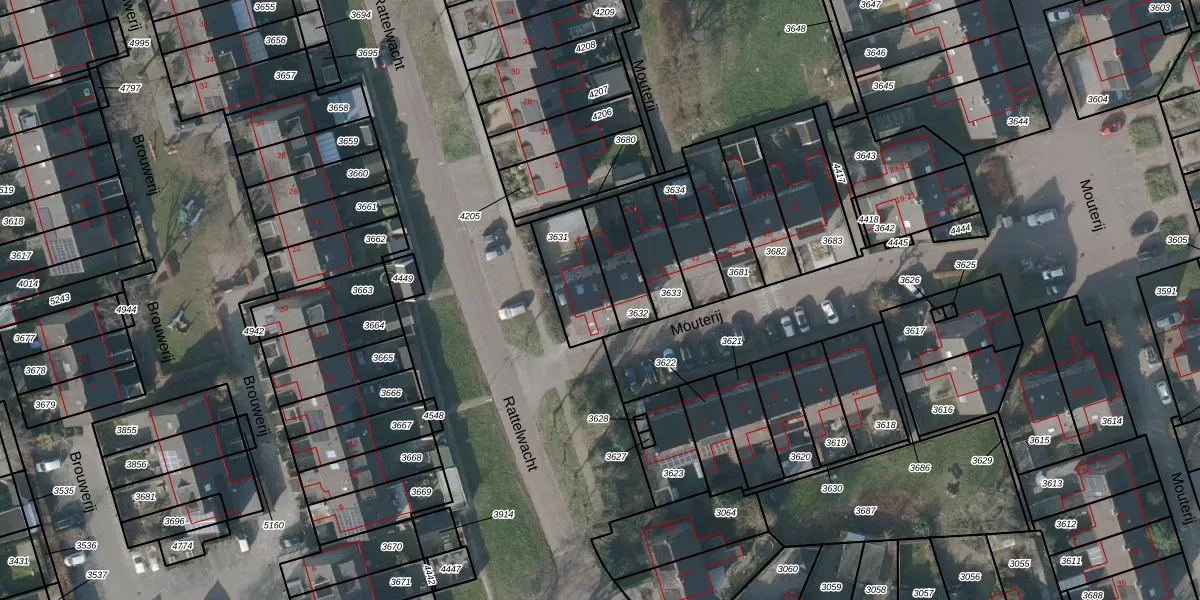 Het perceel waarop Mouterij 3 staat heeft een oppervlakte van 196 m². Dit is een middelgroot perceel. De perceeloppervlakte wordt geregistreerd door het Kadaster. Gedetailleerde informatie over de maten van dit perceel kunt u vinden in het rapport Kadastrale kaart met maatvoering van Mouterij 3.