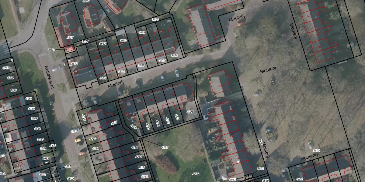 Mouterij 63 is gelegen op kadastraal perceel GRD00B4224. Deze kadastrale aanduiding is uniek en wordt gebruikt door het Kadaster om eigendomsrechten en andere zakelijke rechten vast te leggen. Het perceel maakt onderdeel uit van de kadastrale gemeente Gorredijk.