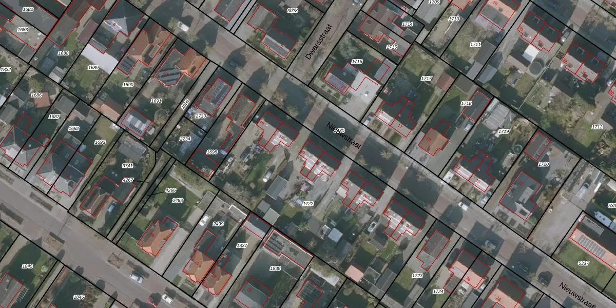Het perceel waarop Nieuwstraat 20 staat heeft een oppervlakte van 2182 m². Dit is een zeer groot perceel. De perceeloppervlakte wordt geregistreerd door het Kadaster. Gedetailleerde informatie over de maten van dit perceel kunt u vinden in het rapport Kadastrale kaart met maatvoering van Nieuwstraat 20.