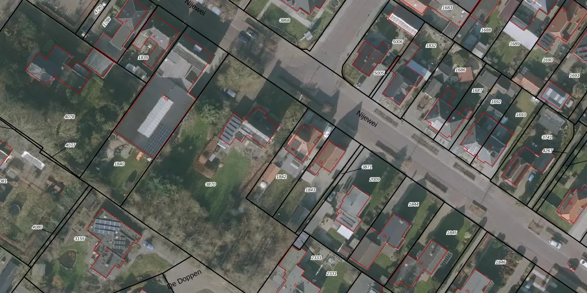 Het perceel waarop Nijewei 10 staat heeft een oppervlakte van 414 m². Dit is een groot perceel. De perceeloppervlakte wordt geregistreerd door het Kadaster. Gedetailleerde informatie over de maten van dit perceel kunt u vinden in het rapport Kadastrale kaart met maatvoering van Nijewei 10.