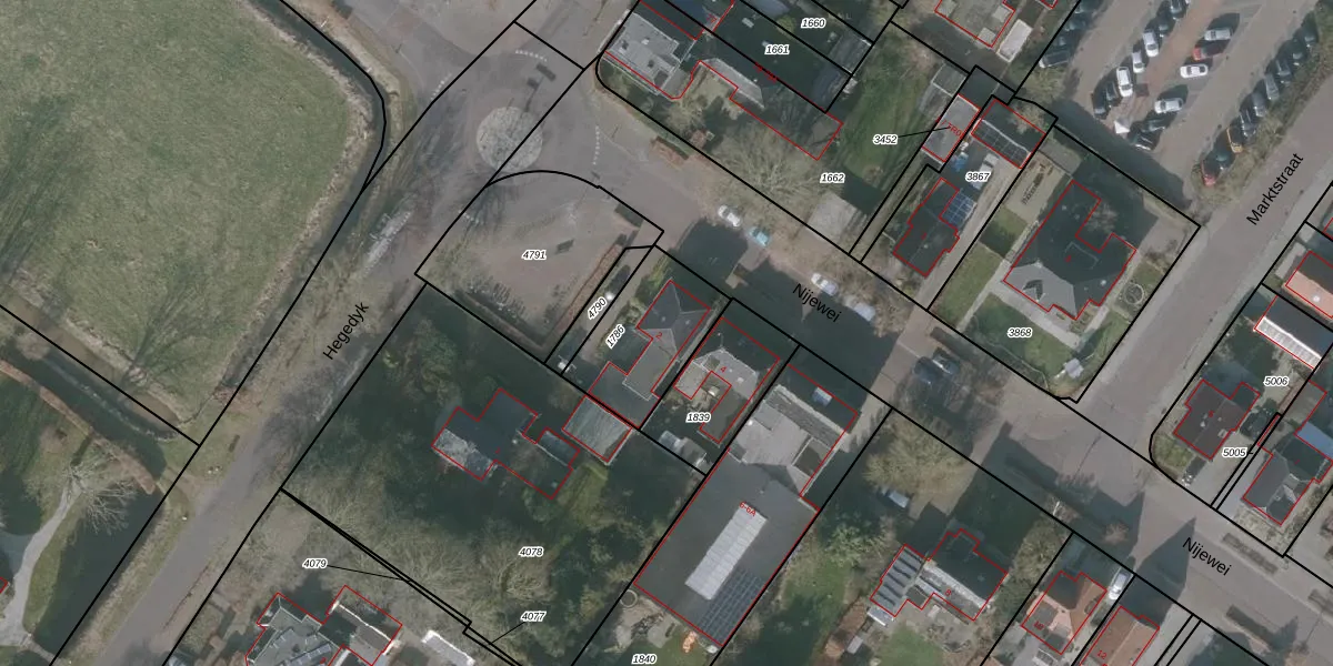 Het perceel waarop Nijewei 2 staat heeft een oppervlakte van 345 m². Dit is een groot perceel. De perceeloppervlakte wordt geregistreerd door het Kadaster. Gedetailleerde informatie over de maten van dit perceel kunt u vinden in het rapport Kadastrale kaart met maatvoering van Nijewei 2.