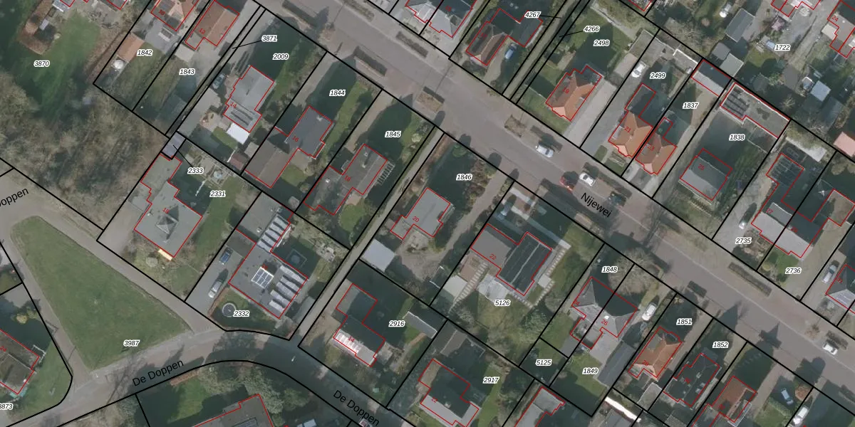 Het perceel waarop Nijewei 20 staat heeft een oppervlakte van 716 m². Dit is een groot perceel. De perceeloppervlakte wordt geregistreerd door het Kadaster. Gedetailleerde informatie over de maten van dit perceel kunt u vinden in het rapport Kadastrale kaart met maatvoering van Nijewei 20.