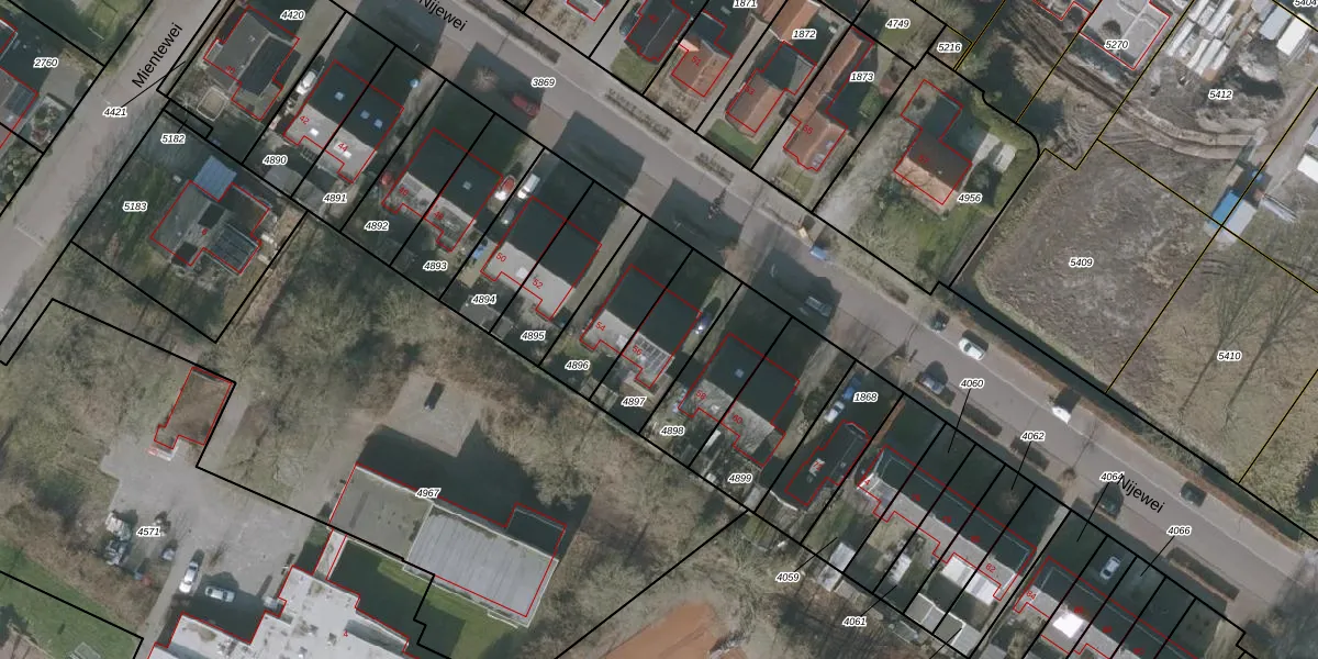 Nijewei 56 is gelegen op kadastraal perceel GRD00C4897. Deze kadastrale aanduiding is uniek en wordt gebruikt door het Kadaster om eigendomsrechten en andere zakelijke rechten vast te leggen. Het perceel maakt onderdeel uit van de kadastrale gemeente Gorredijk.