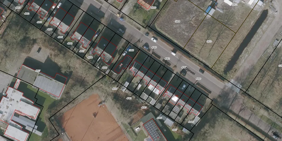 Het perceel waarop Nijewei 76 staat heeft een oppervlakte van 153 m². Dit is een middelgroot perceel. De perceeloppervlakte wordt geregistreerd door het Kadaster. Gedetailleerde informatie over de maten van dit perceel kunt u vinden in het rapport Kadastrale kaart met maatvoering van Nijewei 76.