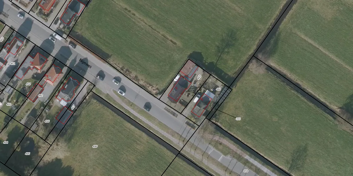 Nijewei 79 is gelegen op kadastraal perceel GRD00G443. Deze kadastrale aanduiding is uniek en wordt gebruikt door het Kadaster om eigendomsrechten en andere zakelijke rechten vast te leggen. Het perceel maakt onderdeel uit van de kadastrale gemeente Gorredijk.