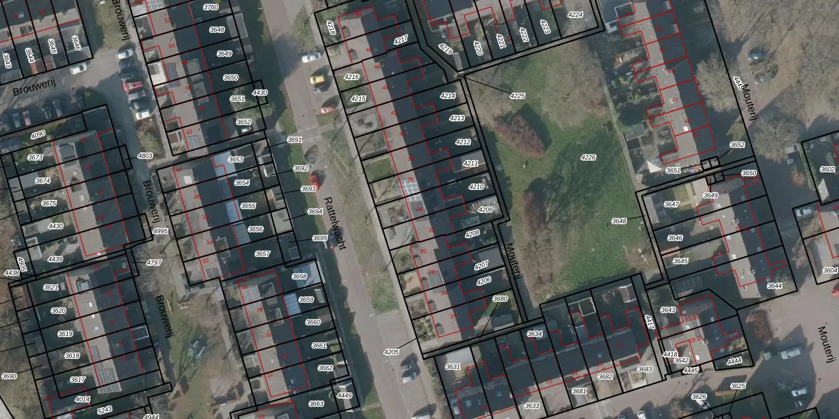 Gebruik de zoekbalk of klik op een perceel voor informatie over de adressen binnen dit perceel.