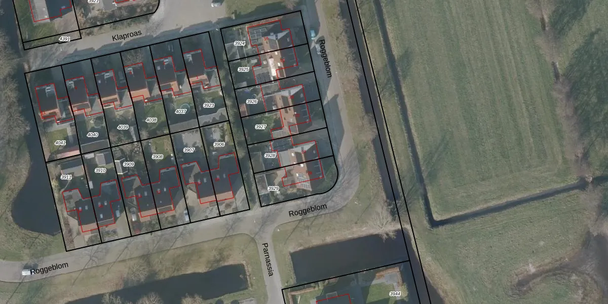 Roggeblom 24 is gelegen op kadastraal perceel GRD00B3928. Deze kadastrale aanduiding is uniek en wordt gebruikt door het Kadaster om eigendomsrechten en andere zakelijke rechten vast te leggen. Het perceel maakt onderdeel uit van de kadastrale gemeente Gorredijk.