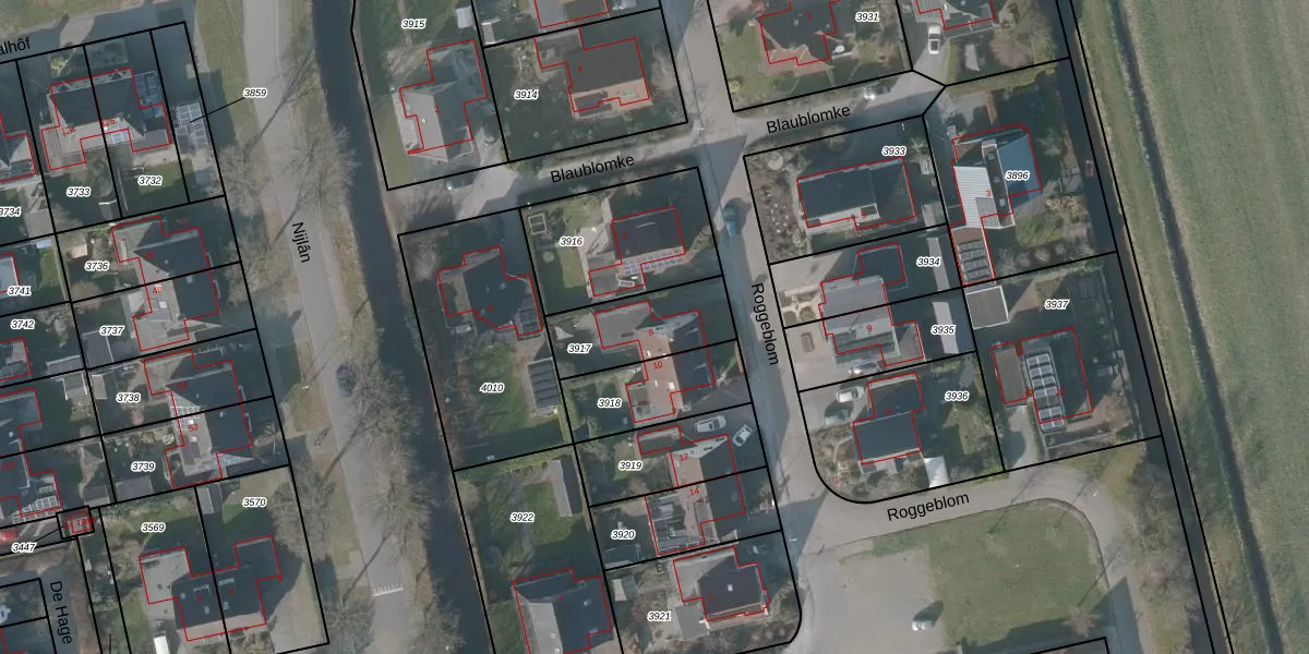 Gebruik de zoekbalk of klik op een perceel voor informatie over de adressen binnen dit perceel.