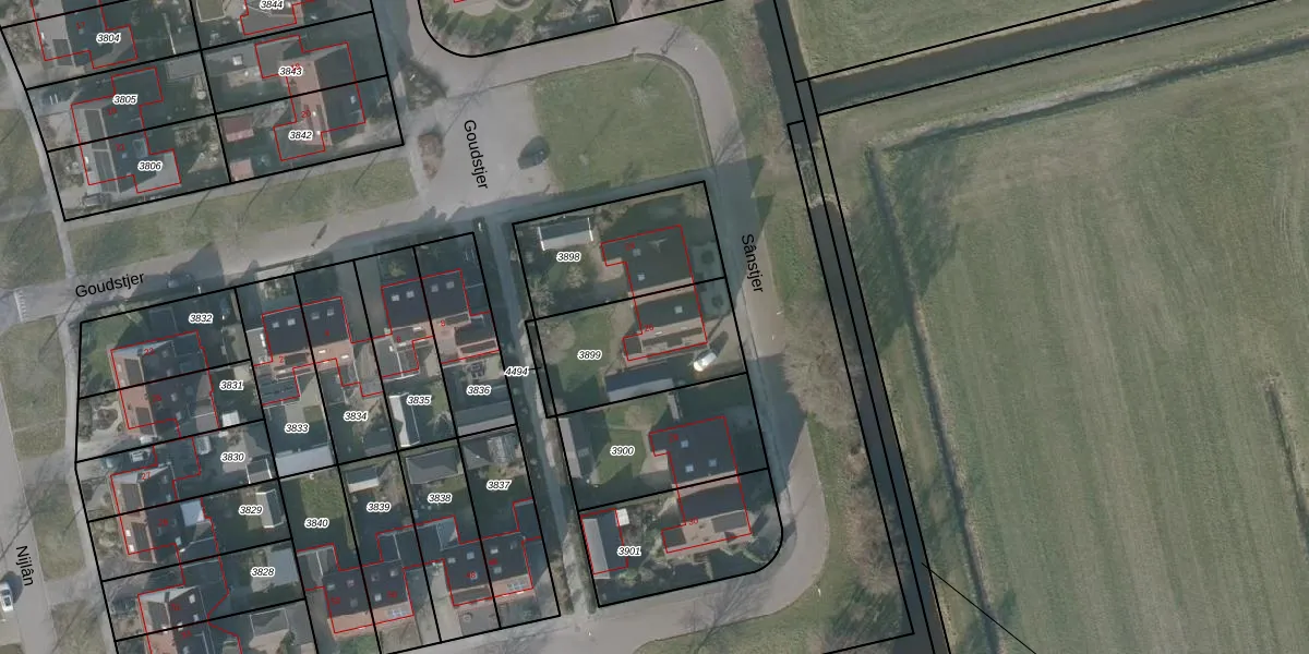 Gebruik de zoekbalk of klik op een perceel voor informatie over de adressen binnen dit perceel.