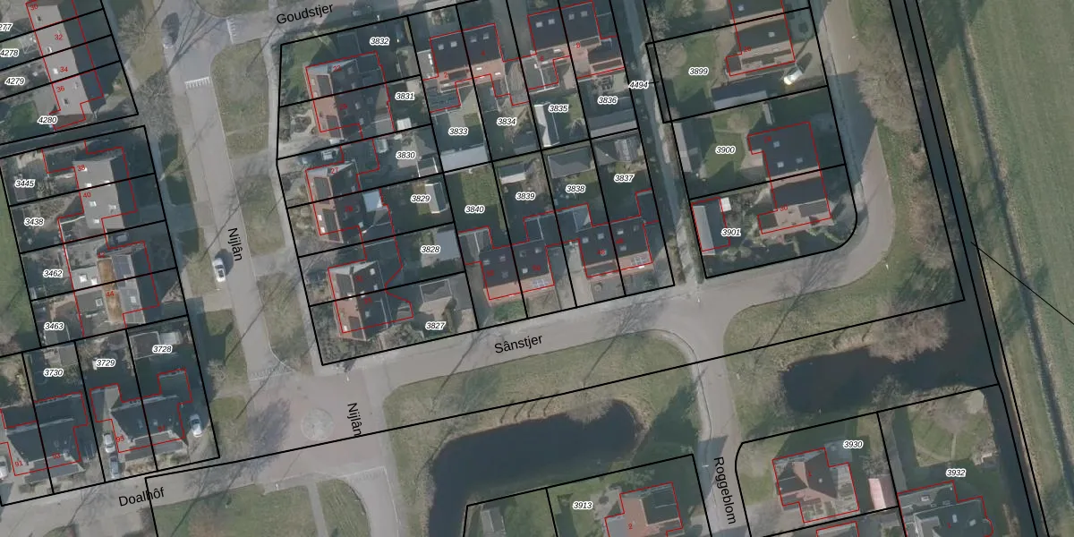 Sânstjer 50 is gelegen op kadastraal perceel GRD00B3839. Deze kadastrale aanduiding is uniek en wordt gebruikt door het Kadaster om eigendomsrechten en andere zakelijke rechten vast te leggen. Het perceel maakt onderdeel uit van de kadastrale gemeente Gorredijk.