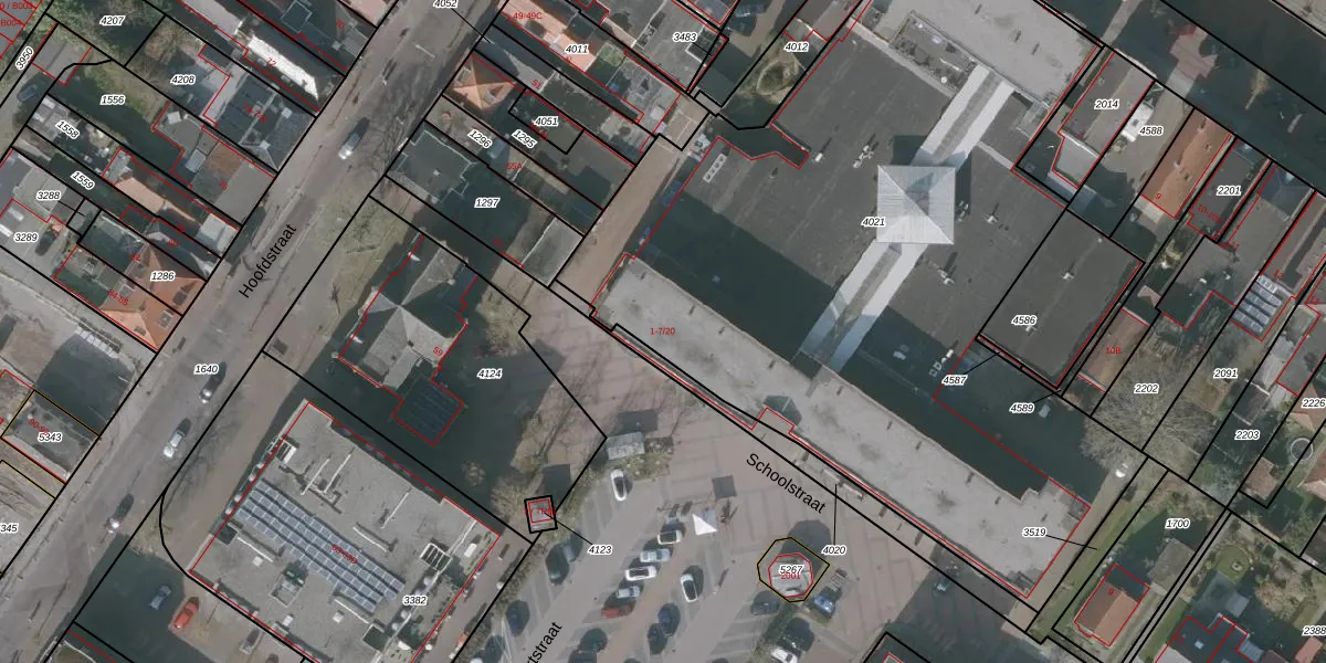 Schoolstraat 1 is gelegen op kadastraal perceel GRD00C4021. Deze kadastrale aanduiding is uniek en wordt gebruikt door het Kadaster om eigendomsrechten en andere zakelijke rechten vast te leggen. Het perceel maakt onderdeel uit van de kadastrale gemeente Gorredijk.