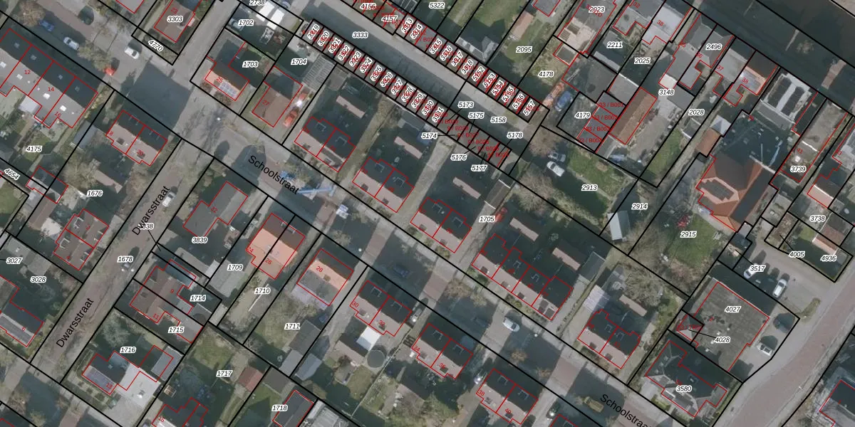 Het perceel waarop Schoolstraat 37 staat heeft een oppervlakte van 2400 m². Dit is een zeer groot perceel. De perceeloppervlakte wordt geregistreerd door het Kadaster. Gedetailleerde informatie over de maten van dit perceel kunt u vinden in het rapport Kadastrale kaart met maatvoering van Schoolstraat 37.