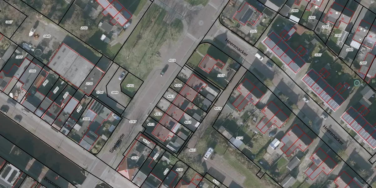 Gebruik de zoekbalk of klik op een perceel voor informatie over de adressen binnen dit perceel.