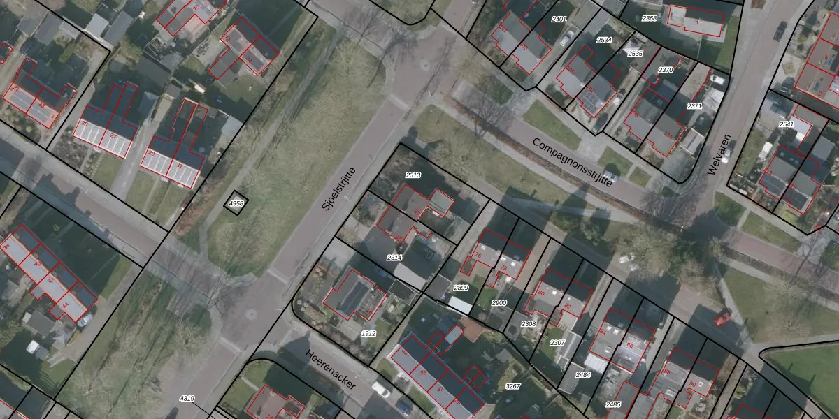 Gebruik de zoekbalk of klik op een perceel voor informatie over de adressen binnen dit perceel.