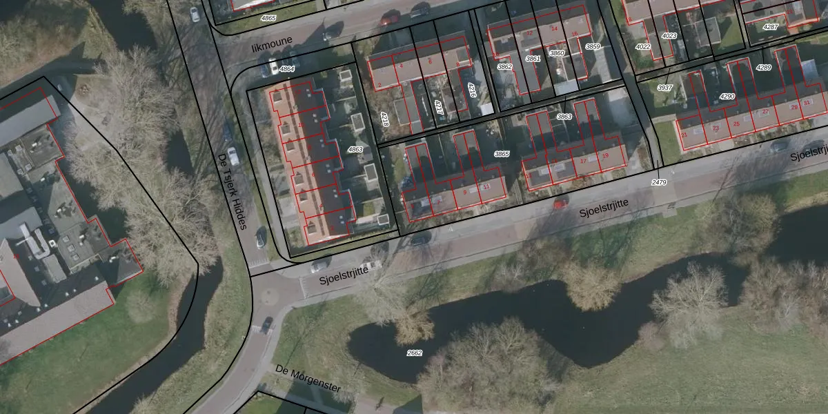 Sjoelstrjitte 5 is gelegen op kadastraal perceel GRD00C3865. Deze kadastrale aanduiding is uniek en wordt gebruikt door het Kadaster om eigendomsrechten en andere zakelijke rechten vast te leggen. Het perceel maakt onderdeel uit van de kadastrale gemeente Gorredijk.