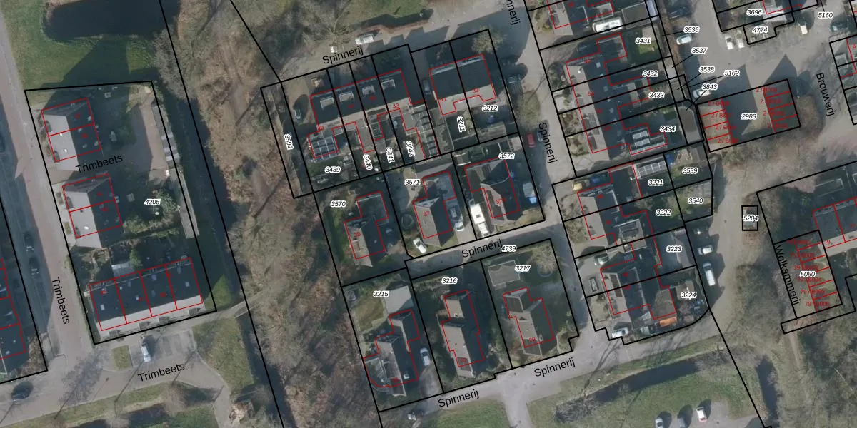 Gebruik de zoekbalk of klik op een perceel voor informatie over de adressen binnen dit perceel.