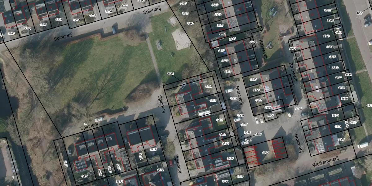 Gebruik de zoekbalk of klik op een perceel voor informatie over de adressen binnen dit perceel.