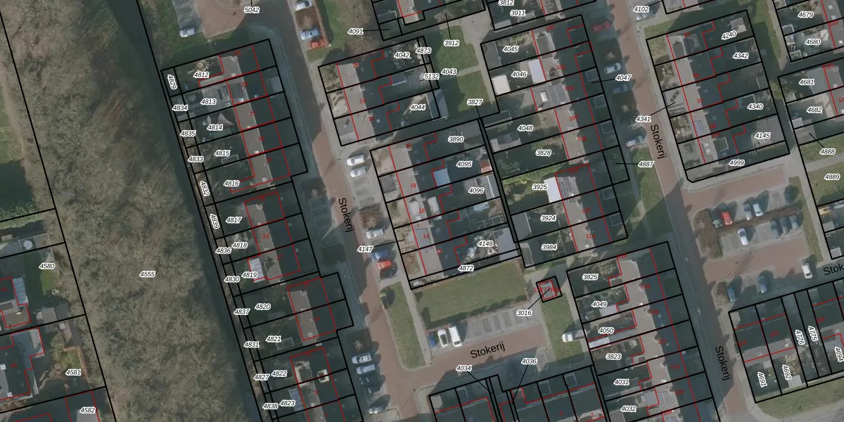 Stokerij 16 is gelegen op kadastraal perceel GRD00C4096. Deze kadastrale aanduiding is uniek en wordt gebruikt door het Kadaster om eigendomsrechten en andere zakelijke rechten vast te leggen. Het perceel maakt onderdeel uit van de kadastrale gemeente Gorredijk.