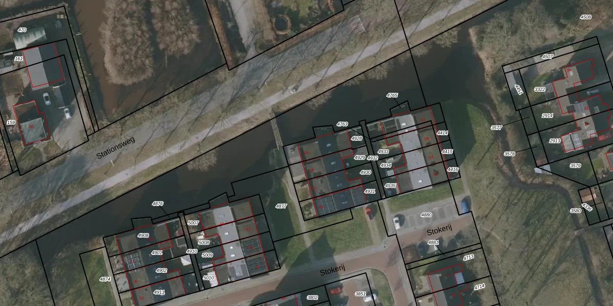 Stokerij 55 is gelegen op kadastraal perceel GRD00C4928. Deze kadastrale aanduiding is uniek en wordt gebruikt door het Kadaster om eigendomsrechten en andere zakelijke rechten vast te leggen. Het perceel maakt onderdeel uit van de kadastrale gemeente Gorredijk.