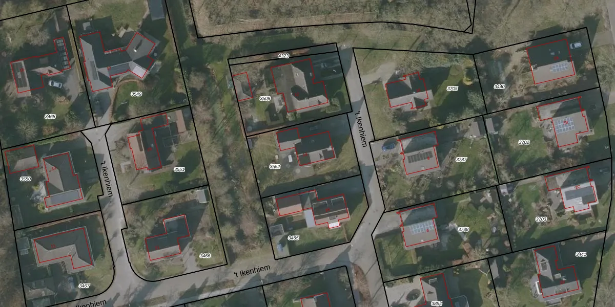 't Ikenhiem 14 is gelegen op kadastraal perceel GRD00B3552. Deze kadastrale aanduiding is uniek en wordt gebruikt door het Kadaster om eigendomsrechten en andere zakelijke rechten vast te leggen. Het perceel maakt onderdeel uit van de kadastrale gemeente Gorredijk.