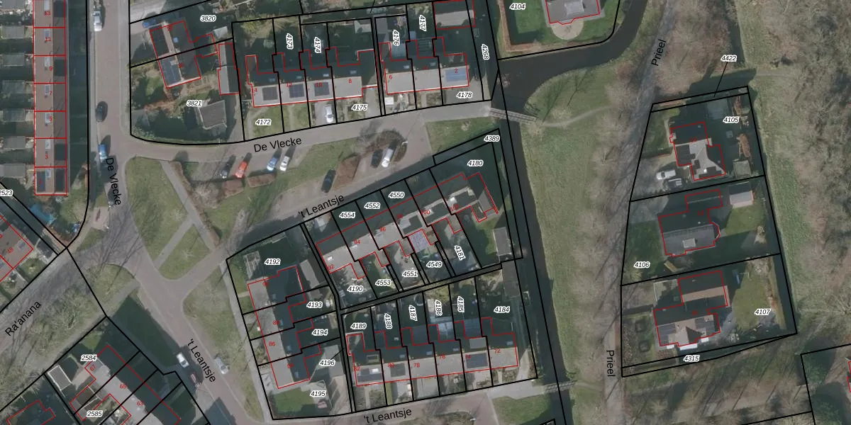 Gebruik de zoekbalk of klik op een perceel voor informatie over de adressen binnen dit perceel.