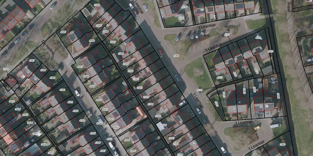 't Leantsje 51 is gelegen op kadastraal perceel GRD00C2592. Deze kadastrale aanduiding is uniek en wordt gebruikt door het Kadaster om eigendomsrechten en andere zakelijke rechten vast te leggen. Het perceel maakt onderdeel uit van de kadastrale gemeente Gorredijk.