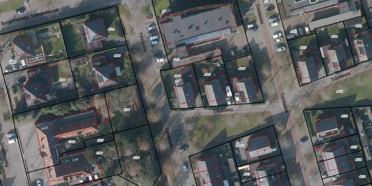 Het perceel waarop Trimbeets 3 staat heeft een oppervlakte van 401 m². Dit is een groot perceel. De perceeloppervlakte wordt geregistreerd door het Kadaster. Gedetailleerde informatie over de maten van dit perceel kunt u vinden in het rapport Kadastrale kaart met maatvoering van Trimbeets 3.