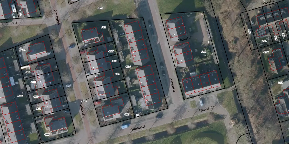 Trimbeets 32 is gelegen op kadastraal perceel GRD00C4204. Deze kadastrale aanduiding is uniek en wordt gebruikt door het Kadaster om eigendomsrechten en andere zakelijke rechten vast te leggen. Het perceel maakt onderdeel uit van de kadastrale gemeente Gorredijk.