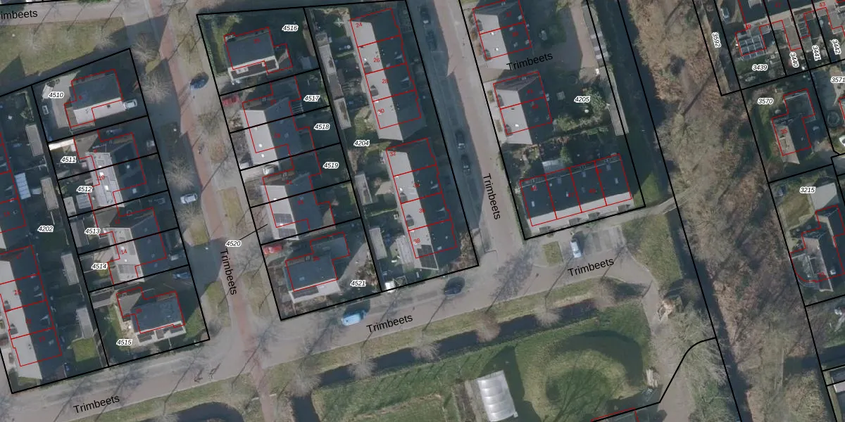 Trimbeets 36 is gelegen op kadastraal perceel GRD00C4204. Deze kadastrale aanduiding is uniek en wordt gebruikt door het Kadaster om eigendomsrechten en andere zakelijke rechten vast te leggen. Het perceel maakt onderdeel uit van de kadastrale gemeente Gorredijk.