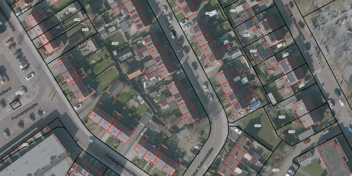 Het perceel waarop Watse Eelkesstrjitte 58 staat heeft een oppervlakte van 7510 m². Dit is een zeer groot perceel. De perceeloppervlakte wordt geregistreerd door het Kadaster. Gedetailleerde informatie over de maten van dit perceel kunt u vinden in het rapport Kadastrale kaart met maatvoering van Watse Eelkesstrjitte 58.