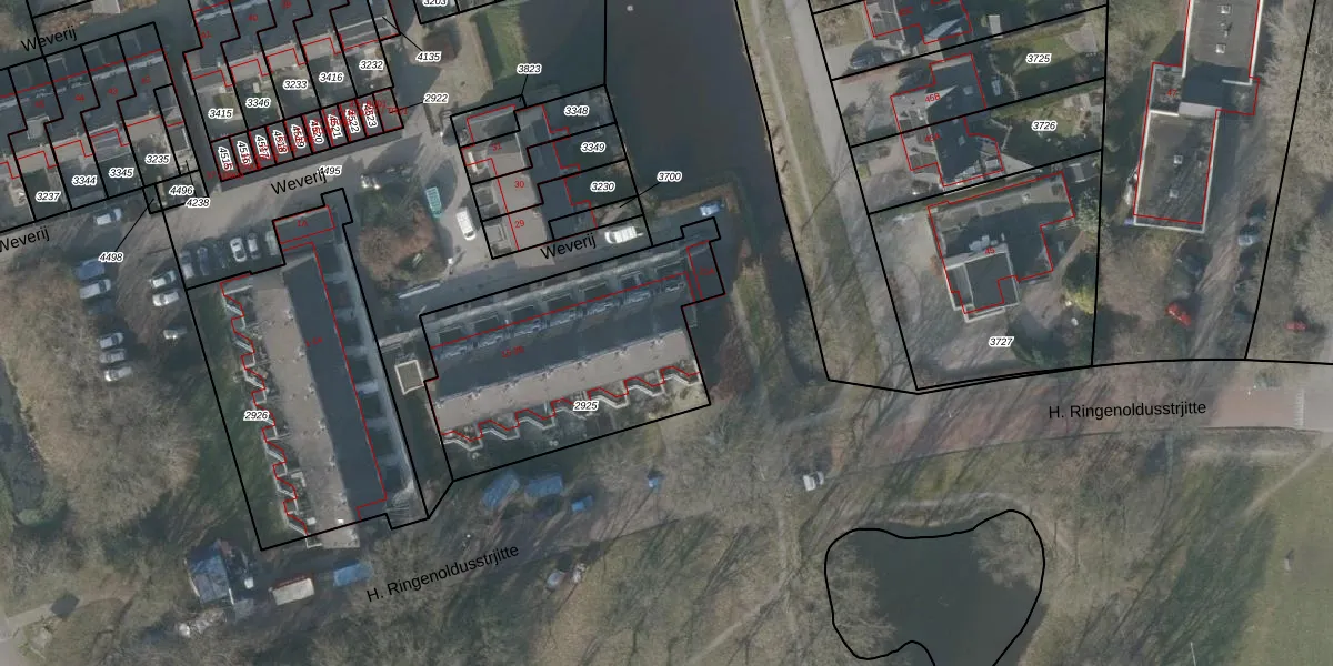 Het perceel waarop Weverij 21 staat heeft een oppervlakte van 1071 m². Dit is een zeer groot perceel. De perceeloppervlakte wordt geregistreerd door het Kadaster. Gedetailleerde informatie over de maten van dit perceel kunt u vinden in het rapport Kadastrale kaart met maatvoering van Weverij 21.