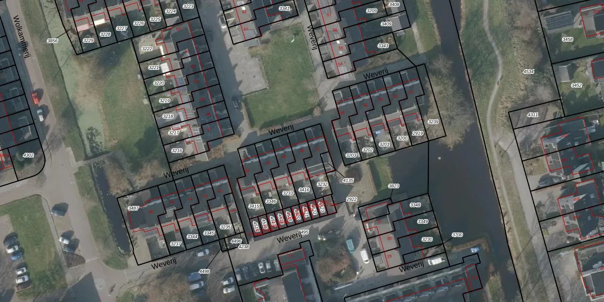 Weverij 38 is gelegen op kadastraal perceel GRD00B3416. Deze kadastrale aanduiding is uniek en wordt gebruikt door het Kadaster om eigendomsrechten en andere zakelijke rechten vast te leggen. Het perceel maakt onderdeel uit van de kadastrale gemeente Gorredijk.