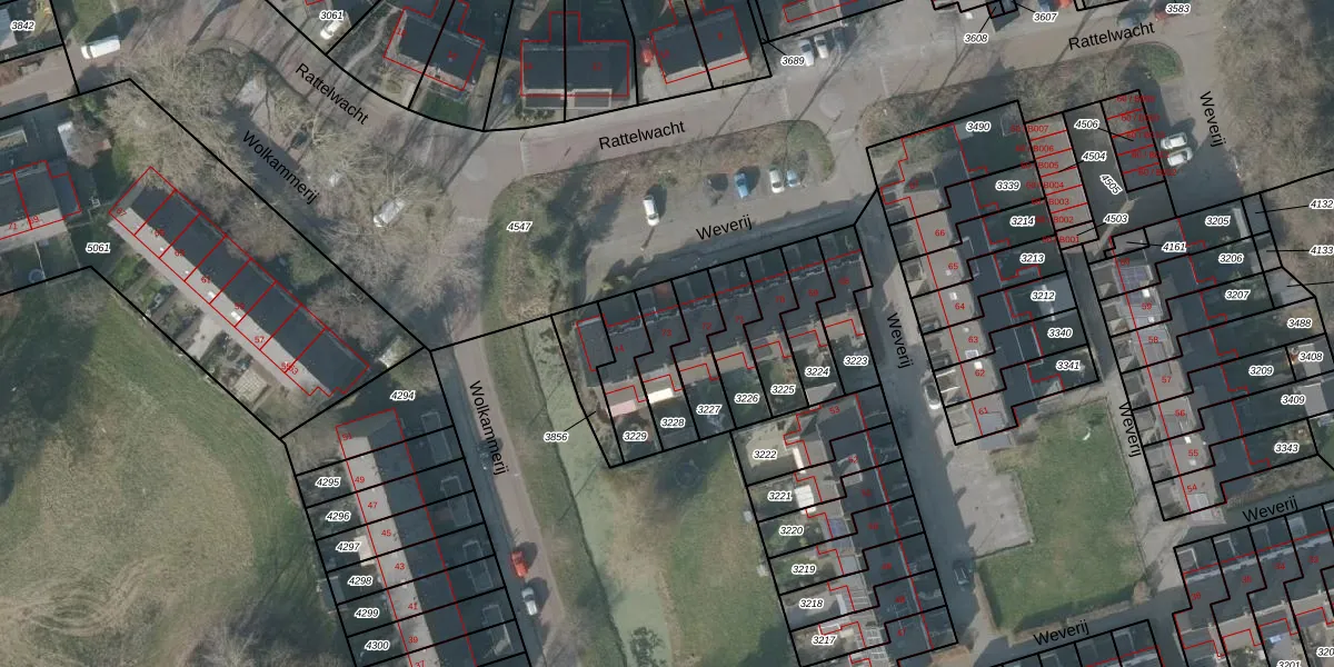 Weverij 73 is gelegen op kadastraal perceel GRD00B3228. Deze kadastrale aanduiding is uniek en wordt gebruikt door het Kadaster om eigendomsrechten en andere zakelijke rechten vast te leggen. Het perceel maakt onderdeel uit van de kadastrale gemeente Gorredijk.
