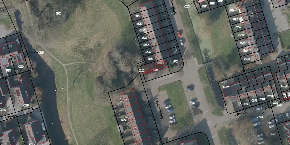 Wolkammerij 37-B006 is gelegen op kadastraal perceel GRD00C5059. Deze kadastrale aanduiding is uniek en wordt gebruikt door het Kadaster om eigendomsrechten en andere zakelijke rechten vast te leggen. Het perceel maakt onderdeel uit van de kadastrale gemeente Gorredijk.