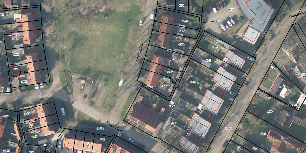 Gebruik de zoekbalk of klik op een perceel voor informatie over de adressen binnen dit perceel.