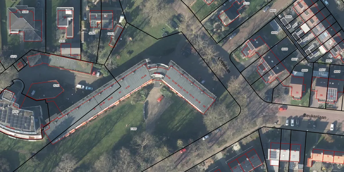 Het perceel waarop Beukenlaan 50 staat heeft een oppervlakte van 7195 m². Dit is een zeer groot perceel. De perceeloppervlakte wordt geregistreerd door het Kadaster. Gedetailleerde informatie over de maten van dit perceel kunt u vinden in het rapport Kadastrale kaart met maatvoering van Beukenlaan 50.